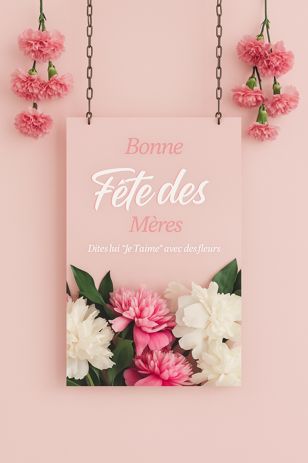 Thématique / Saison : Fête des Mères / Fleurs & Jardin / Cadeaux & Plantes — visuel idéal pour souligner l’événement “fête des mamans” et encourager l’achat de fleurs, bouquets, plantes ou décorations.