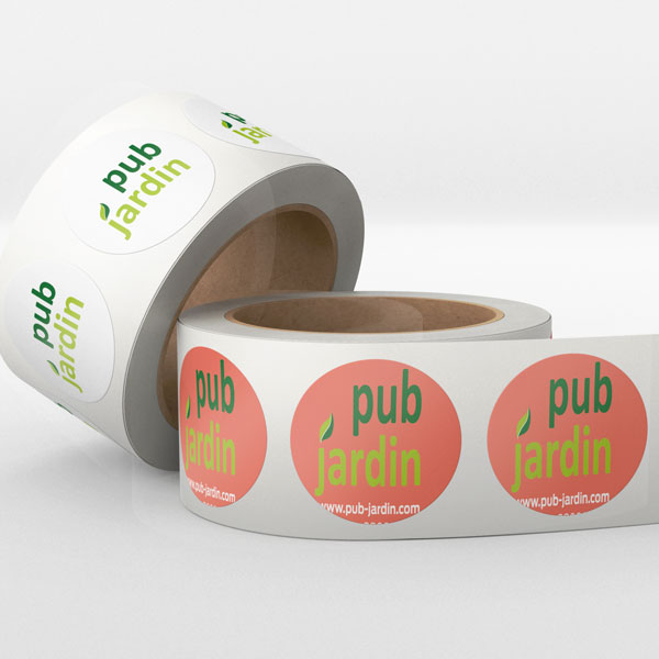 Etiquettes rondes diamètre 4 cm disponible de 1000 à 10 000 exemplaires livrées en rouleau.